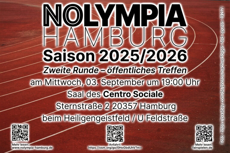 Dennoch will sich der Senat schon im Sommer 2026 in einem Referendum von den Hamburger*innen gewissermaßen einen Blankoscheck ausstellen lassen: Die Bewerbung ist geplant für die Spiele 2036, 2040 oder 2044.